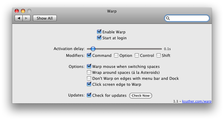 Warp works with Mac OS X 10.5 Leopard and Mac OS X 10.6 Snow Leopard.